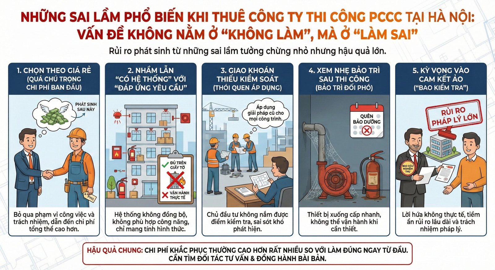 Những sai lầm phổ biến khi thuê công ty thi công PCCC tại Hà Nội: Vấn đề không nằm ở “không làm”, mà ở “làm sai”