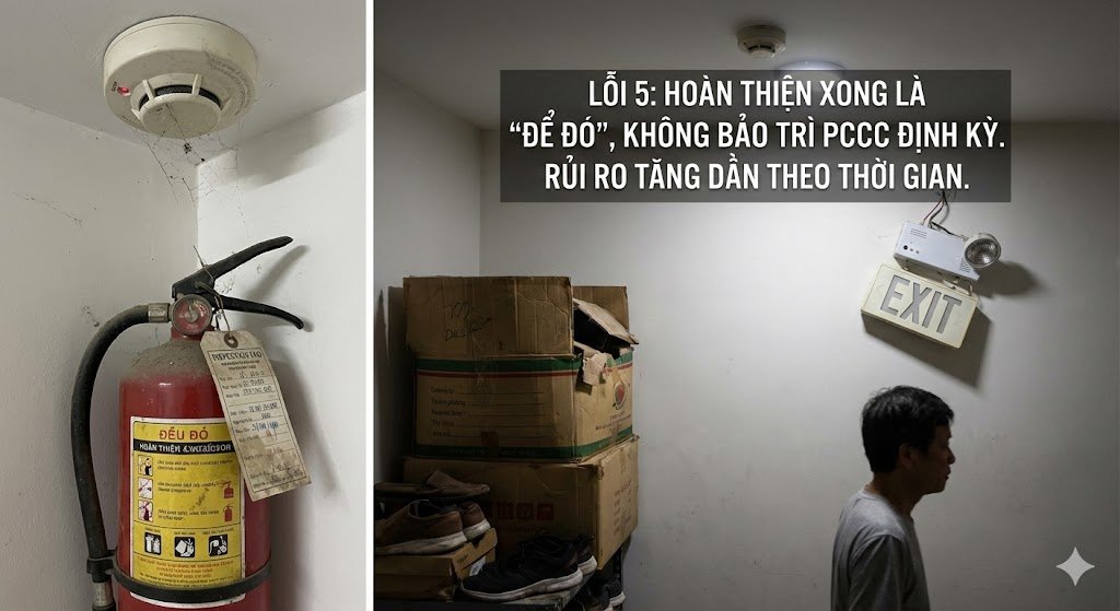 Ở nhiều nhà phố 5 tầng, đặc biệt là nhà có người thuê, người ở thay đổi liên tục, việc không bảo trì PCCC còn kéo theo một hệ quả khác: không ai biết hệ thống đang ở trạng thái nào và phải xử lý ra sao khi có sự cố. Báo cháy kêu nhưng không rõ tín hiệu thật hay giả, bình chữa cháy có nhưng không chắc còn dùng được, đèn thoát nạn không sáng khi cúp điện. Khi đó, sự chủ quan ban đầu chuyển thành rủi ro trực tiếp cho con người.