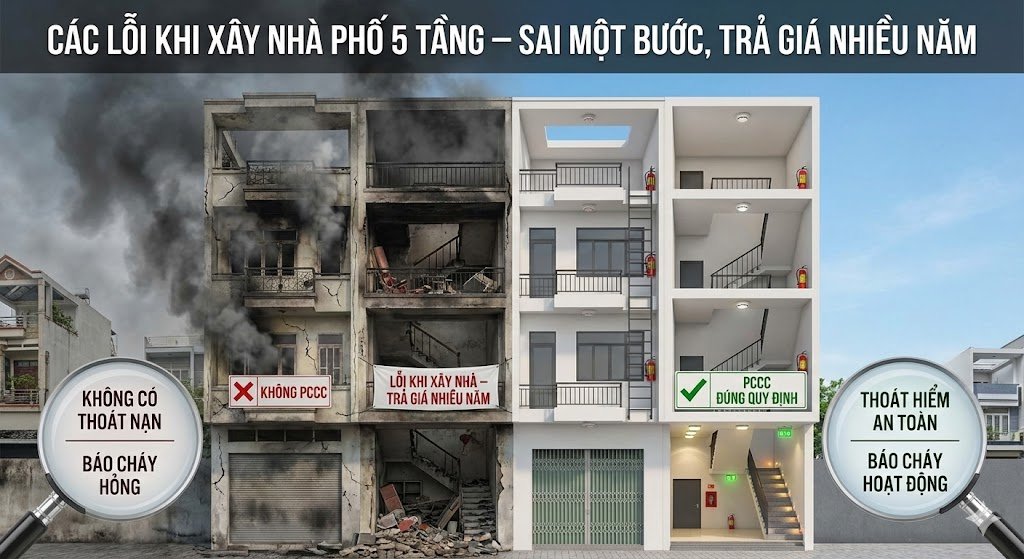 Nhận diện những lỗi PCCC phổ biến nhất khi xây nhà phố 5 tầng mà chủ nhà hay mắc phải
