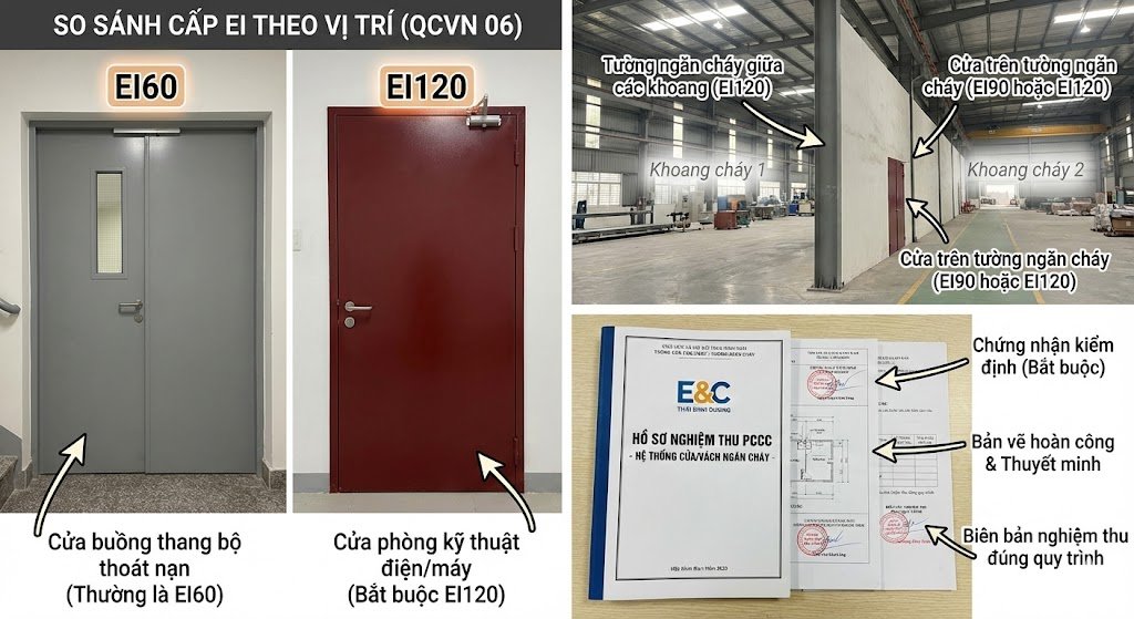 Nếu bạn đang trong giai đoạn thiết kế, lắp đặt hoặc chuẩn bị nghiệm thu cửa, tường, vách ngăn cháy, phần tiếp theo sẽ giúp bạn nhìn rõ hơn bản chất kỹ thuật – pháp lý phía sau từng cấp EI và lựa chọn đúng ngay từ đầu.