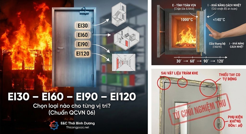 Vấn đề không nằm ở sản phẩm. Vấn đề nằm ở việc hiểu chưa đúng cách chọn cấp EI. Không ít kỹ sư mới vào nghề chỉ xem EI là con số mô tả “độ chịu lửa”, trong khi chính QCVN 06:2022/SĐ1:2023 quy định rất rõ EI30, EI60, EI90, EI120 phải được áp dụng theo từng vị trí, từng loại công trình và từng mức nguy hiểm cháy. Sai một mức EI, toàn bộ cấu kiện ngăn cháy sẽ không còn giá trị pháp lý.