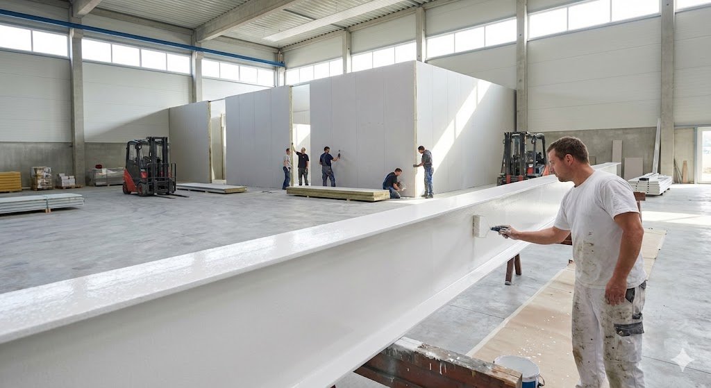 Với nhà xưởng, kho sản xuất sử dụng kết cấu thép, sơn chống cháy thường được lựa chọn để bảo vệ khung thép chính, đặc biệt trong các công trình cần giữ không gian mở, hạn chế can thiệp vào kiến trúc hiện hữu. Tuy nhiên, điều này chỉ phù hợp khi khu vực đó không có yêu cầu chia khoang cháy hoặc bảo vệ lối thoát nạn bằng kết cấu ngăn cháy. Trong các xưởng có nguy cơ cháy cao, khu vực kỹ thuật, kho chứa vật liệu dễ cháy, sơn chống cháy cho kết cấu là chưa đủ; lúc này, các vách, tường, trần hoặc cửa ngăn cháy vẫn là yêu cầu bắt buộc.
