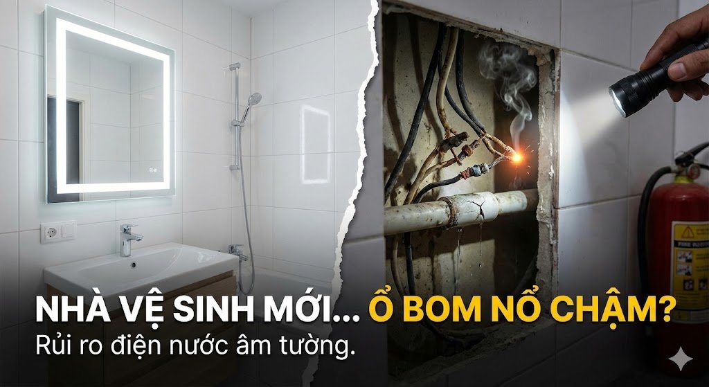 Nhà vệ sinh là nơi hội tụ đồng thời của nước, độ ẩm cao và thiết bị điện hoạt động thường xuyên. Chỉ một mối nối điện không kín, một đường ống rò rỉ âm tường hay một thiết bị điện lắp sai chuẩn cũng có thể tạo ra nguy cơ chập cháy kéo dài trong nhiều tháng mà không ai hay biết. Điều đáng lo ngại là các sự cố này hiếm khi bộc lộ ngay. Chúng âm thầm phát triển phía sau lớp gạch, trong trần thạch cao, cho đến khi xuất hiện mùi khét, mất điện cục bộ hoặc nghiêm trọng hơn là cháy lan sang khu vực khác.