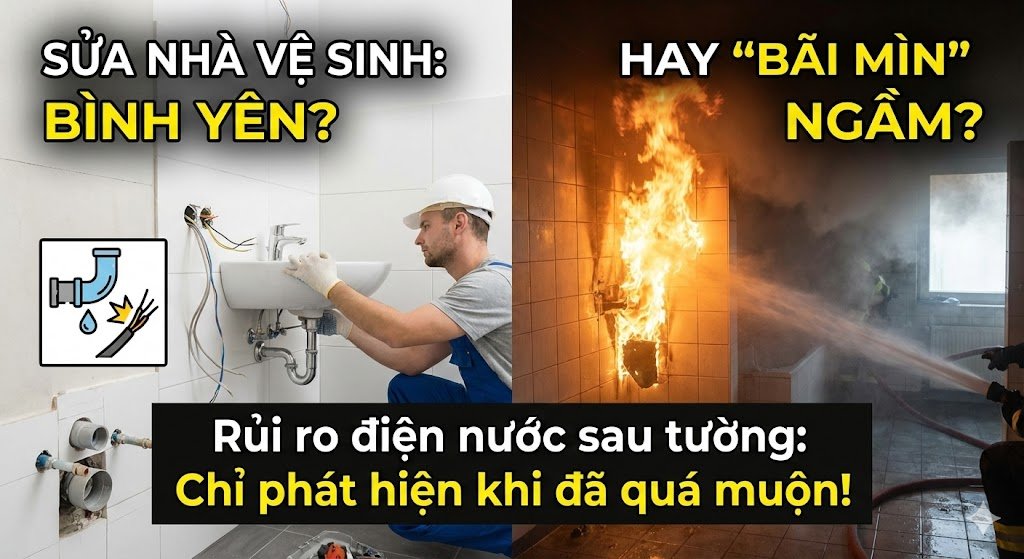 Sửa chữa nhà vệ sinh thường được xem là hạng mục “nhẹ”, làm nhanh, chi phí không lớn và ít ảnh hưởng đến an toàn tổng thể của ngôi nhà. Thay một chiếc bình nóng lạnh, đi lại vài mét ống nước, lắp thêm đèn hay quạt thông gió – tất cả đều quen thuộc đến mức nhiều gia đình gần như giao trọn cho thợ mà không đặt thêm câu hỏi nào. Nhưng trên thực tế, đây lại là khu vực tiềm ẩn rủi ro điện nước cao nhất trong nhà, và cũng là điểm khởi phát của không ít sự cố chập điện, cháy âm tường mà khi phát hiện thì đã quá muộn.