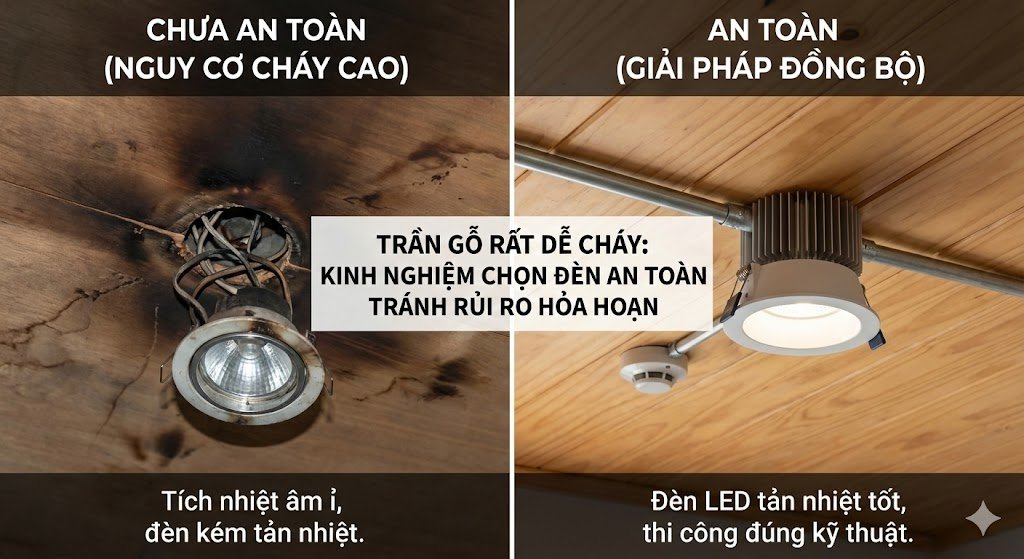 Trần Gỗ Rất Dễ Cháy: Kinh Nghiệm Chọn Đèn An Toàn Tránh Rủi Ro Hỏa Hoạn